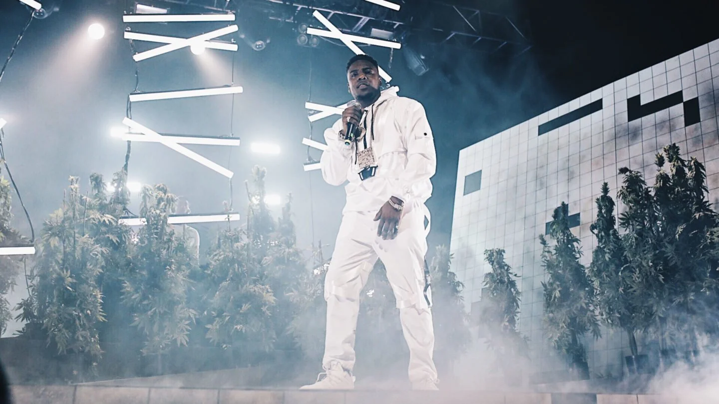 When the curtain falls in London, on what is the 6th stop of an 8-city sold-out UK tour, we’re faced with a stage that appears inhabited by marijuana plants and makeshift hanging tube lights, all imprisoned by huge angled steel structures on either side. Following a spirited 10-minute hype-up from long-time collaborator, producer, and now artist in his own right, Steel Banglez, what ensues is a minute-long David Attenborough-esque clip of a gas-masked MIST sauntering around a grow-house. Out floats the man of the moment, clothed in a fresh all-white tracksuit, crooning out his earnest bars to the melodically desisting, MOBO Award winning, ‘Hot Property’, the final single release before he goes into ‘Diamond In The Dirt’s ‘Game Changer’. Mist doesn’t even make it through the first verse before the track is pulled-up and he starts again. Such is the case for most of the night.